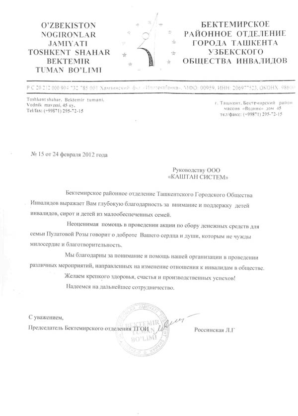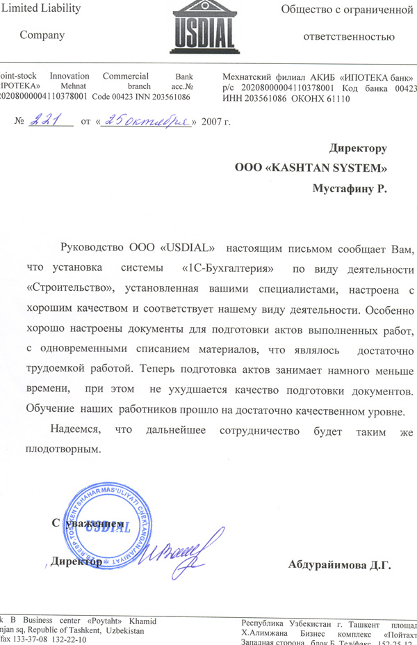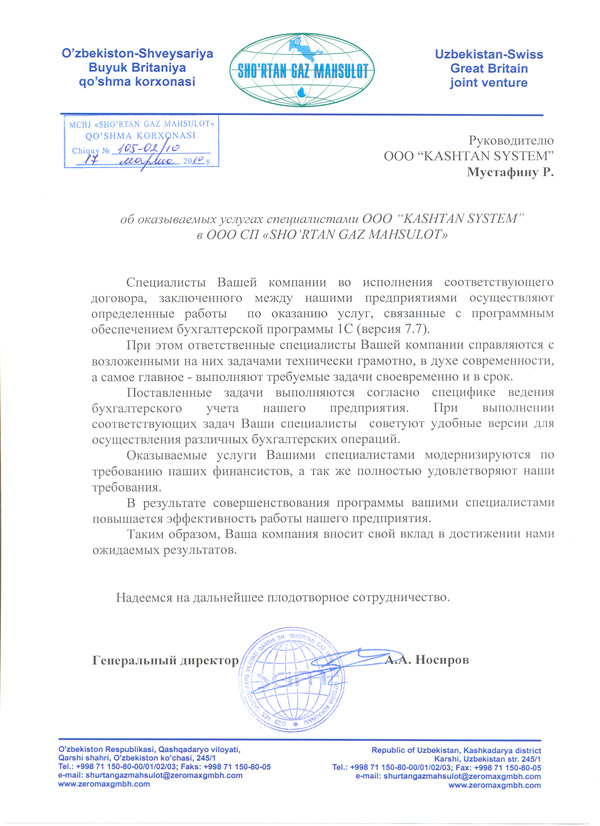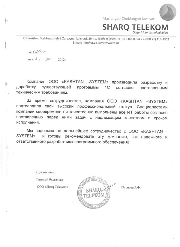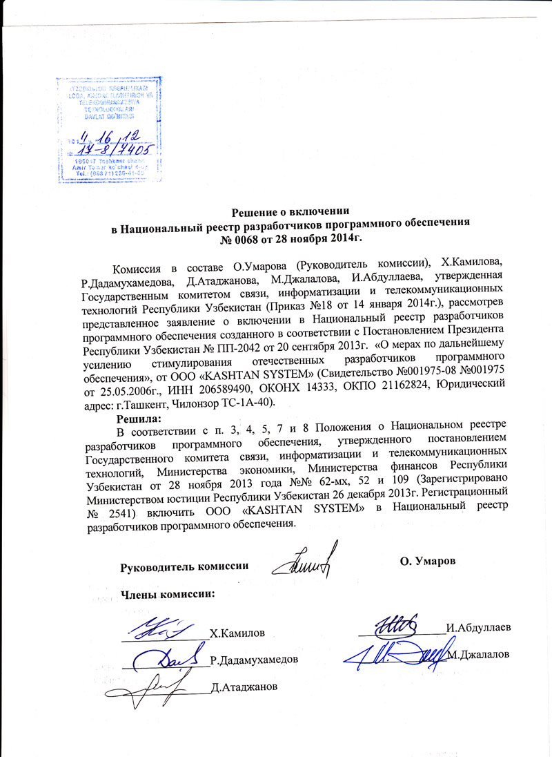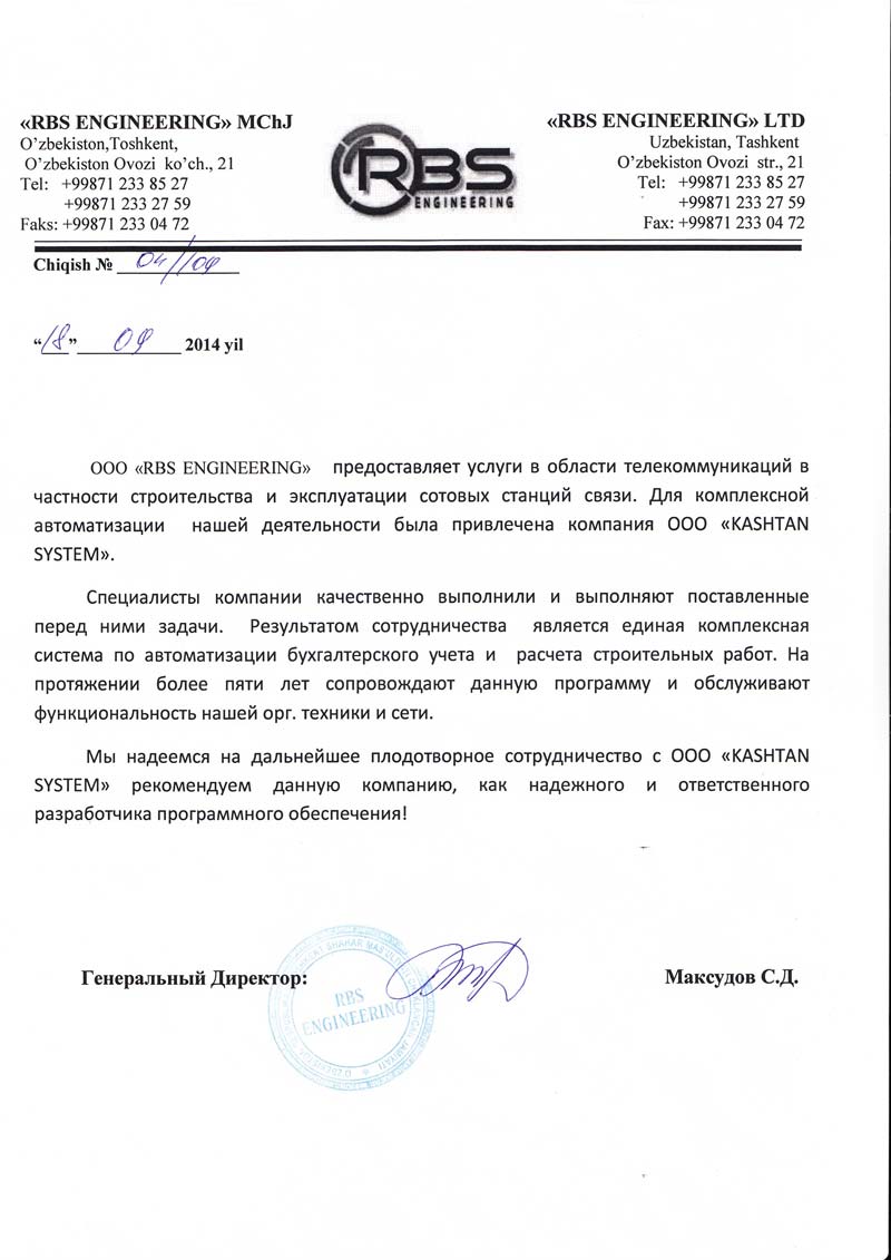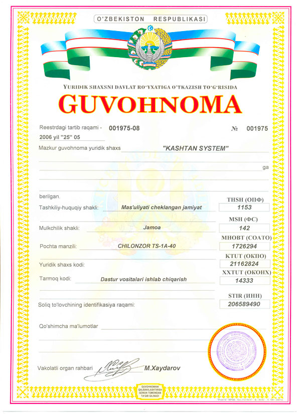 ООО "КАШТАН СИСТЕМ" зарегистрирована 25.05.2006г., в Республике Узбекистан, г.Ташкенте.