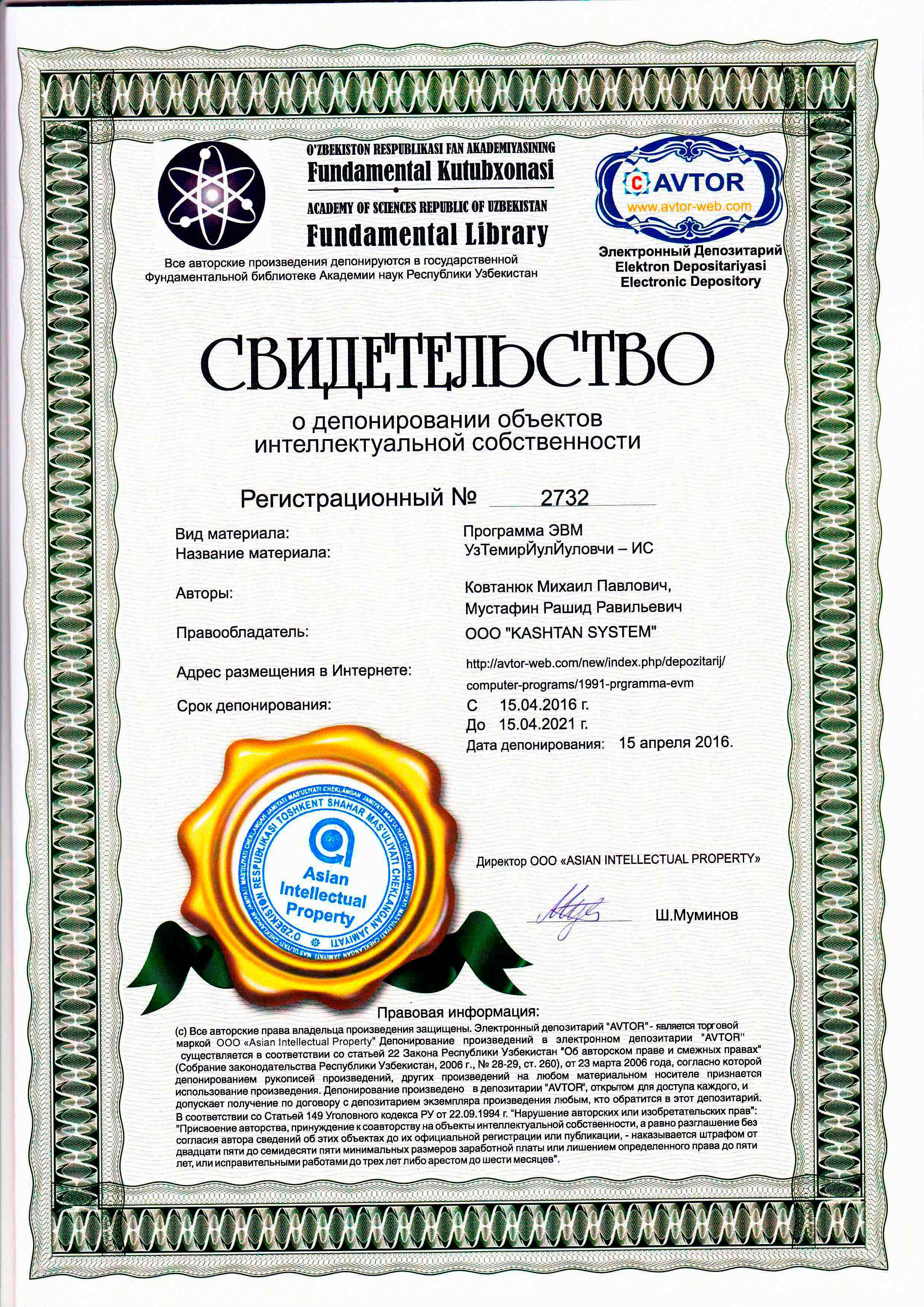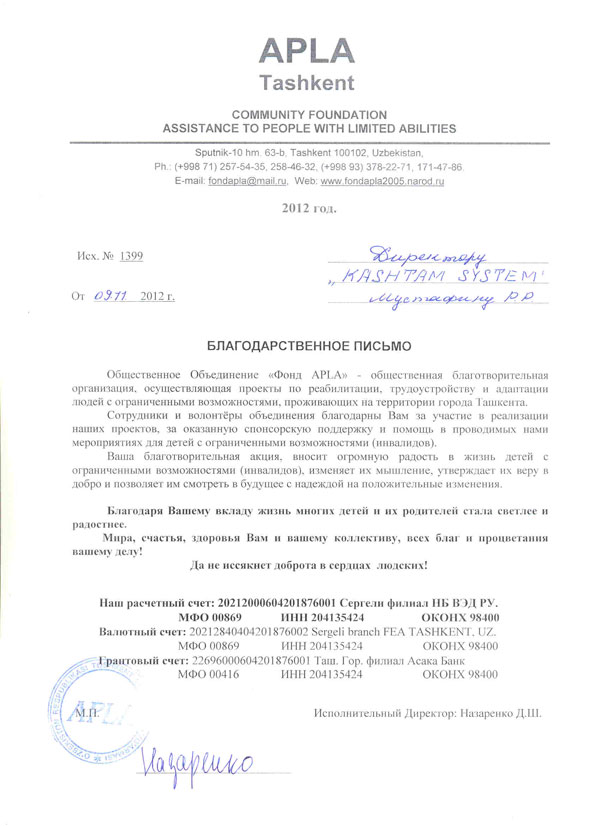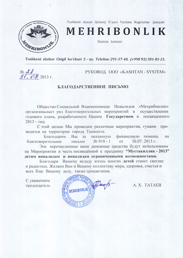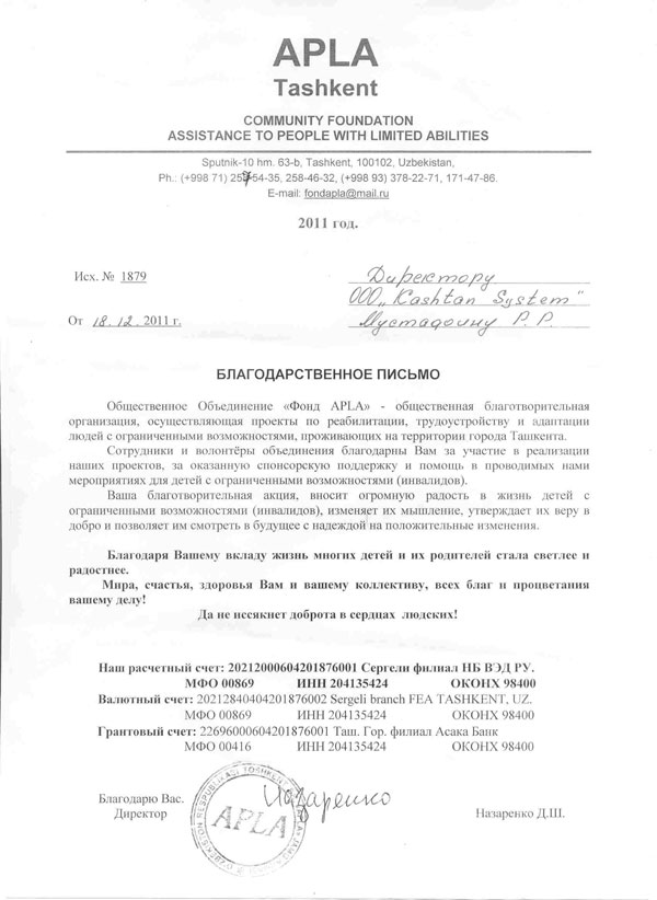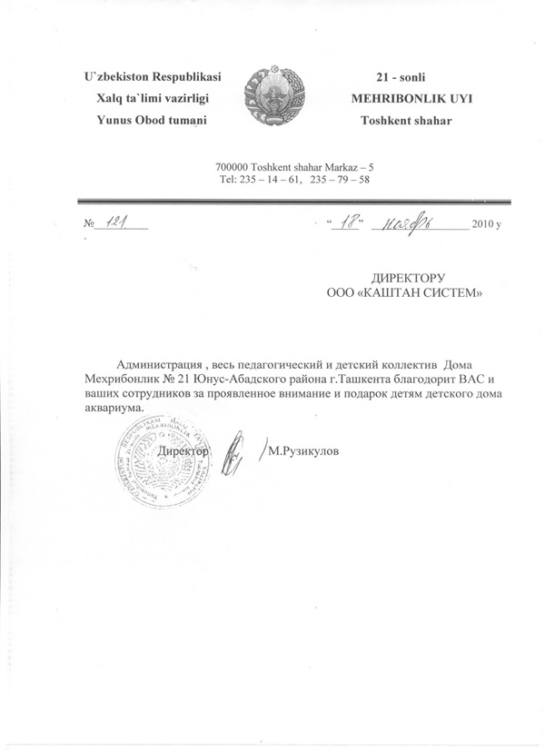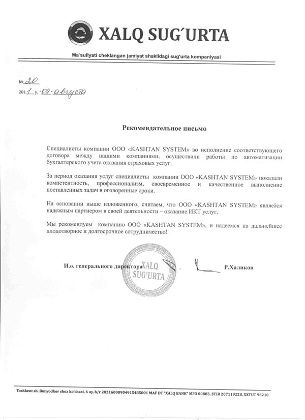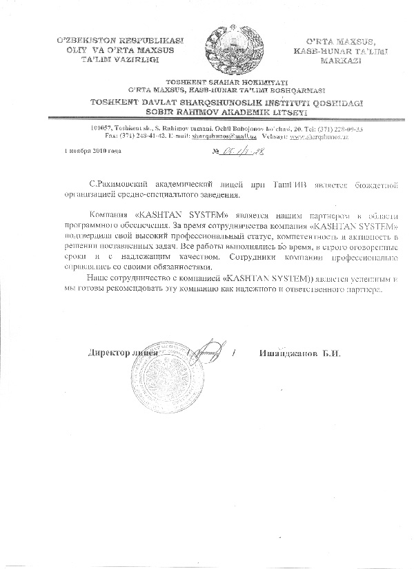 ООО "КАШТАН СИСТЕМ" зарегистрирована 25.05.2006г., в Республике Узбекистан, г.Ташкенте.